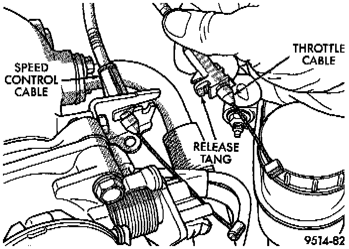 11. Squeeze retainer tab on throttle cable and slide cable out of bracket.