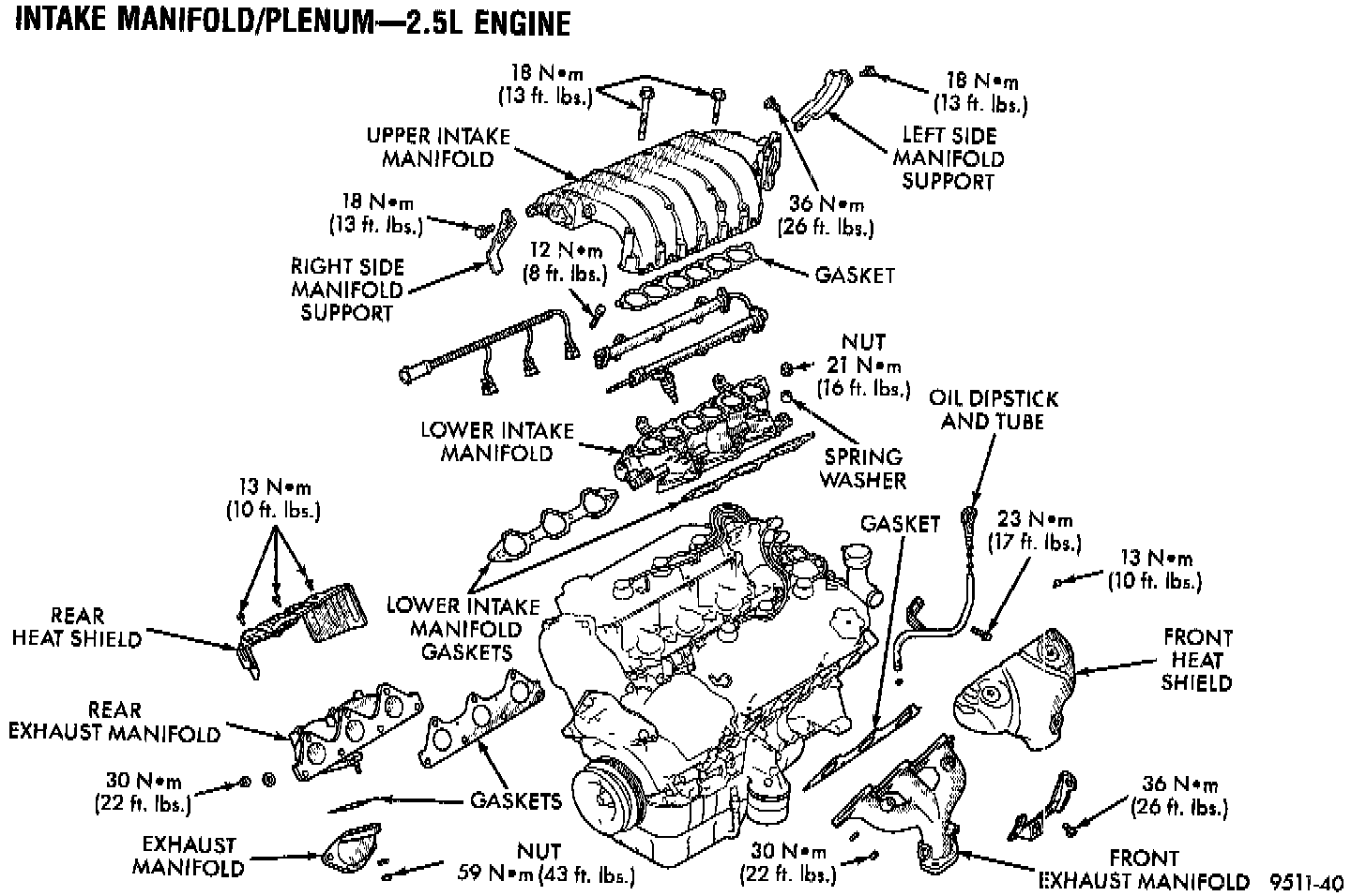 19. Remove lower intake manifold attaching bolts. Remove intake manifold.