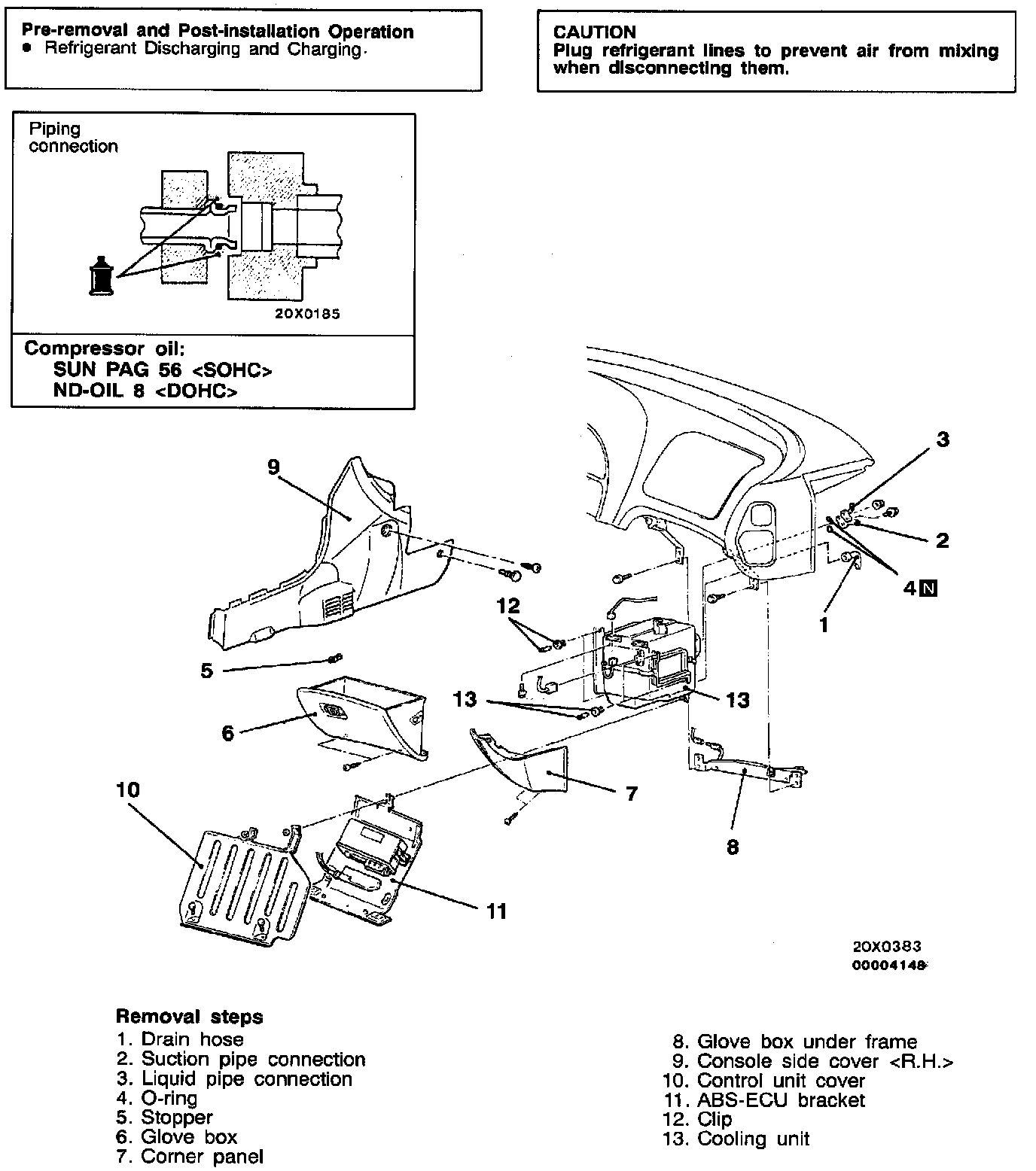 When replacing the cooling unit with new one, refill the evaporator with a specified amount of compressor oil.