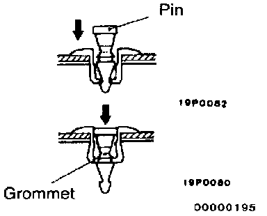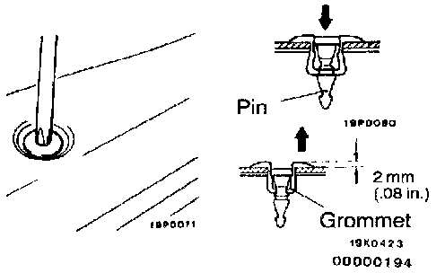 CAUTION: Do not push the pin inward more than necessary because it may damage the grommet, or the pin may fall in, if pushed too far.