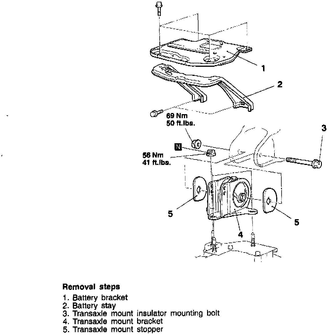 Slightly lower the transaxle, and then remove the transaxle mount bracket.