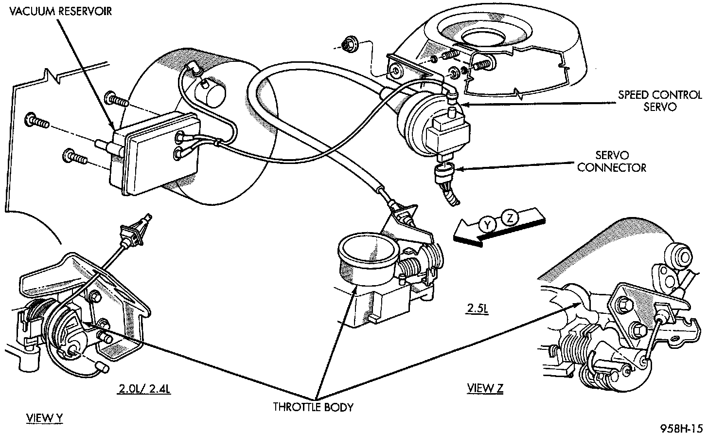4. Remove cable from throttle cam. Refer to Speed Control Servo Cable Replacement.
