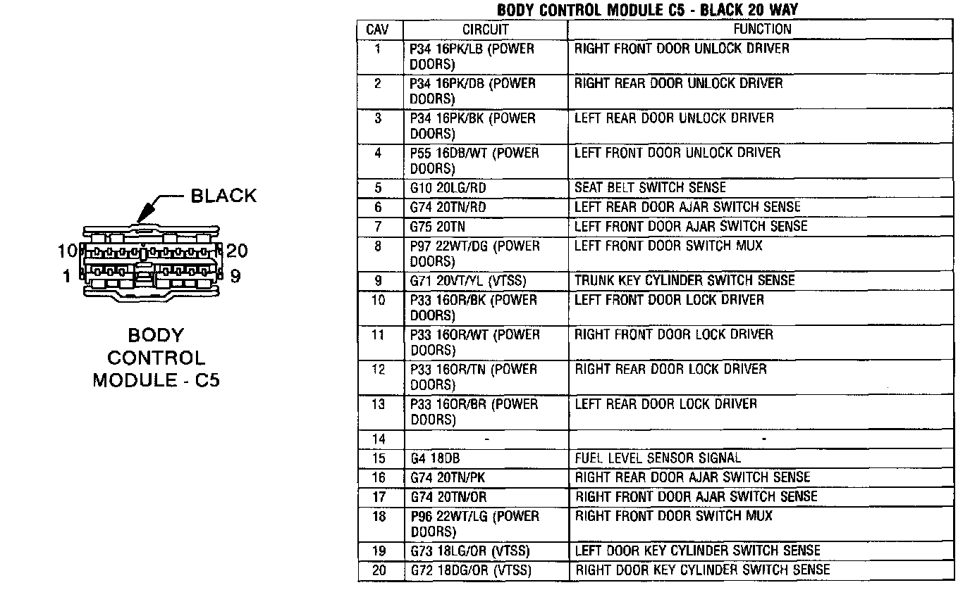 Body Control Module C5 Black 20 Way: