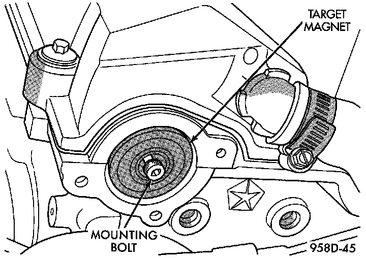 1. Install target magnet in end of camshaft. Tighten mounting screw to 3 N.m (30 in. lbs.) torque.