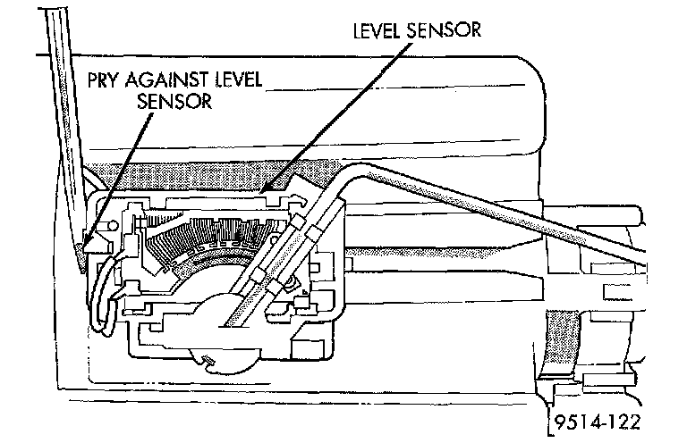3. Insert a screwdriver between the fuel pump module and the top of the level sensor housing. Push level sensor down slightly.