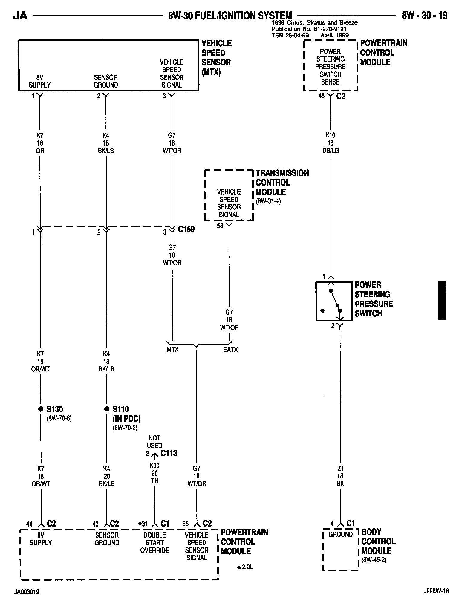 1999 Cirrus, Stratus and Breeze Service Manual - Publication Number 81-270-9121