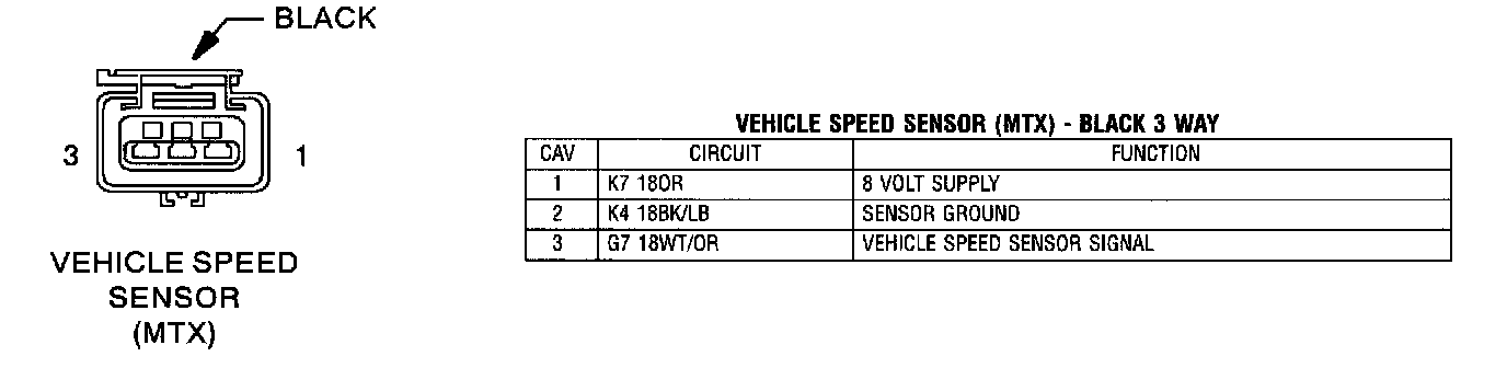Vehicle Speed Sensor (MTX) Black 3 Way: