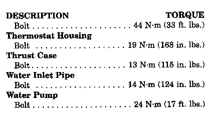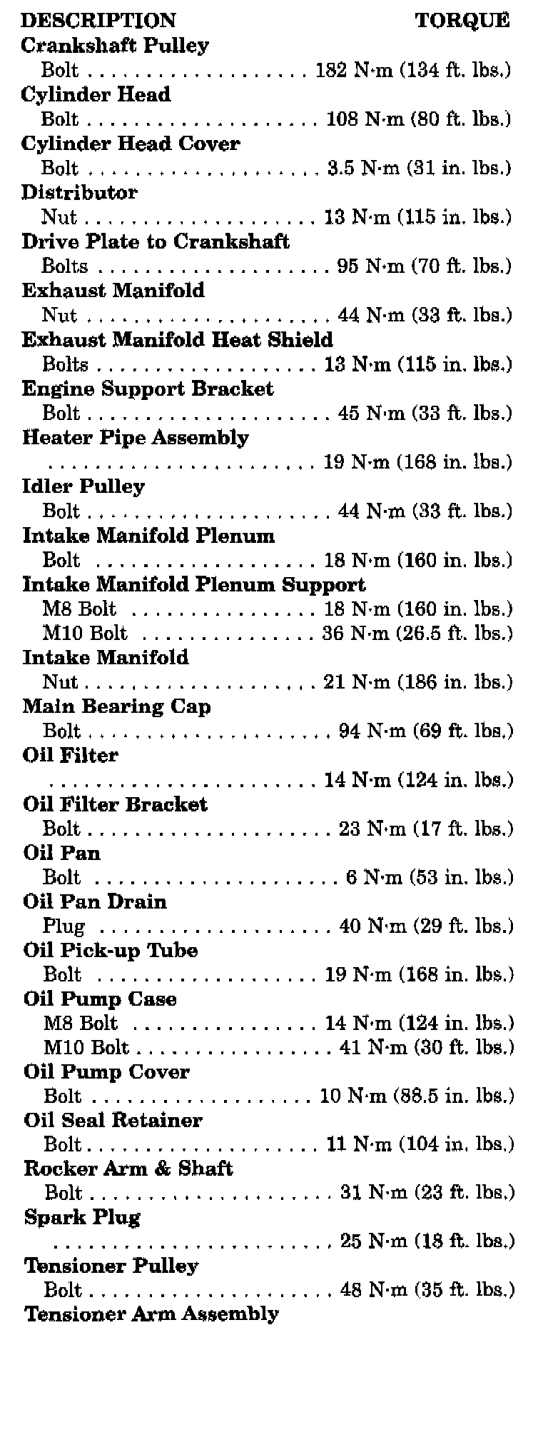 Tightening Specifications