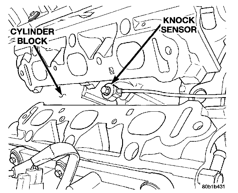 The sensor monitors both the right and left bank of cylinders. The knock sensor bolt(s) or screws into the top of the cylinder block below the cylinder heads.