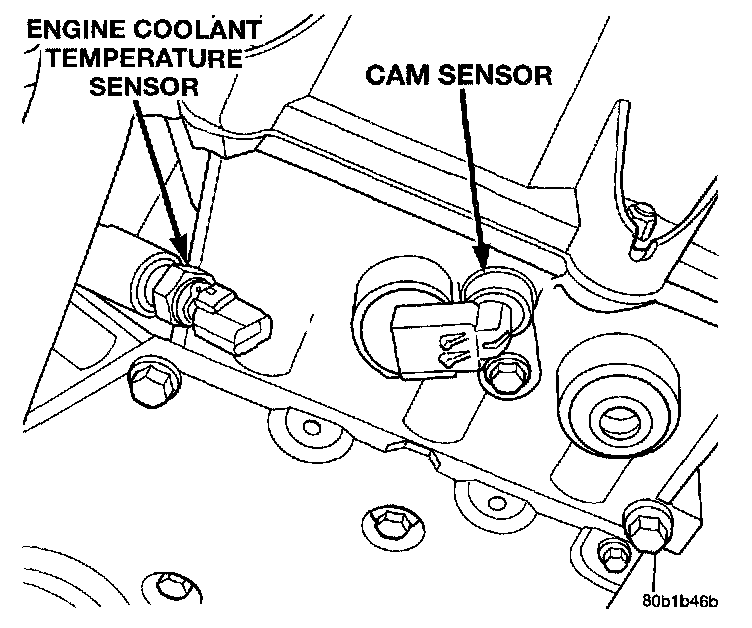The camshaft position sensor provides cylinder identification to the Powertrain Control Module (PCM). The sensor generates pulses as groups of notches on the camshaft sprocket pass underneath it. The PCM keeps track of crankshaft rotation and identifies each cylinder by the pulses generated by the notches on the camshaft sprocket.