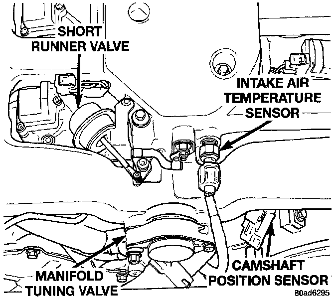 The camshaft position sensor is installed in the timing belt housing cover above the left camshaft sprocket.