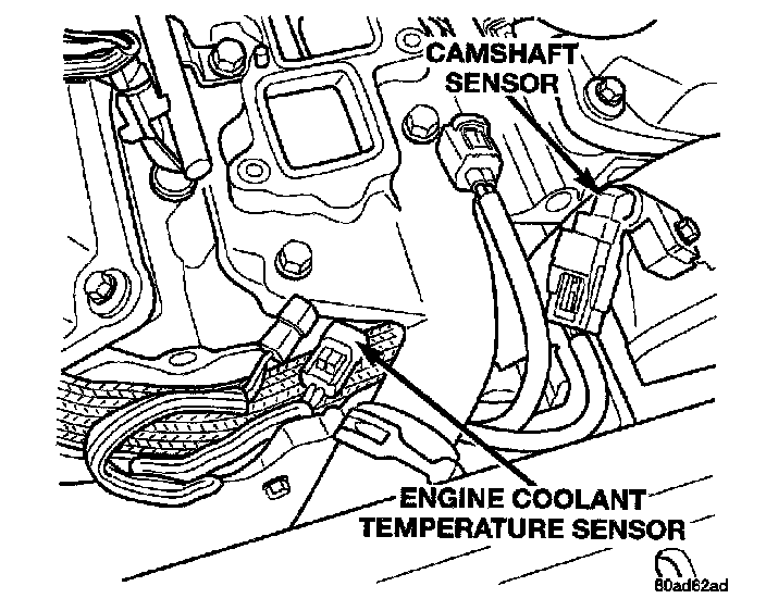 The engine coolant temperature sensor is located next to the thermostat housing.