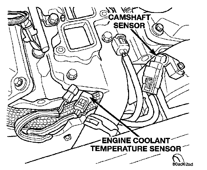 1. With the key off, disconnect wire harness connector from coolant temperature sensor.