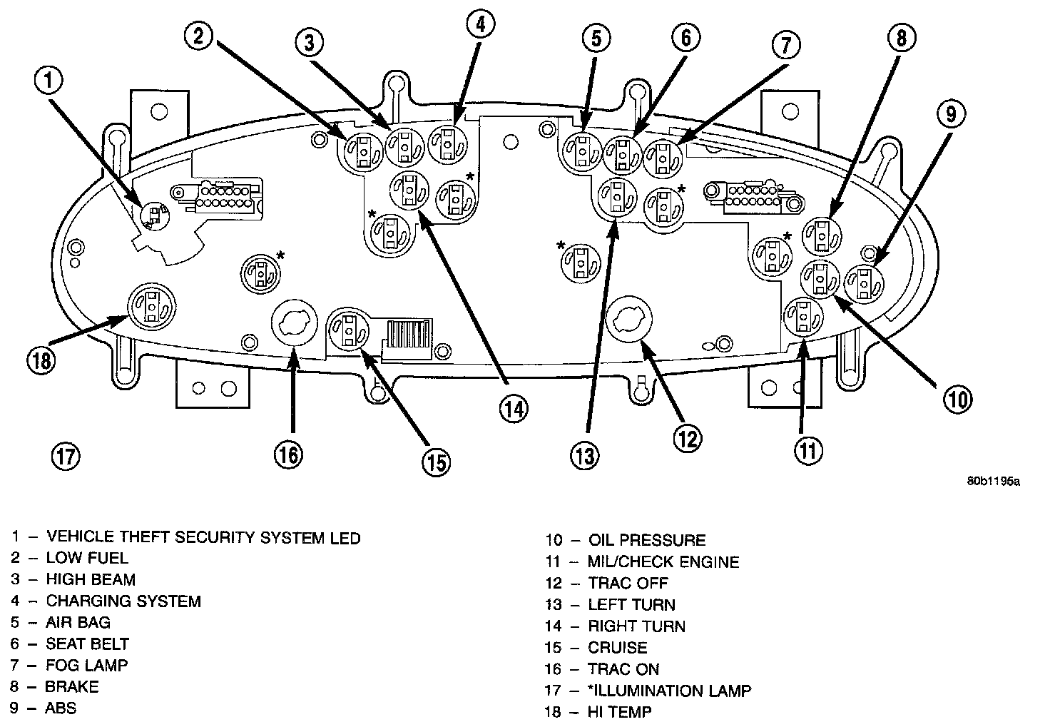 The Instrument Cluster must be removed to service the Vehicle Theft Security System LED.REMOVAL