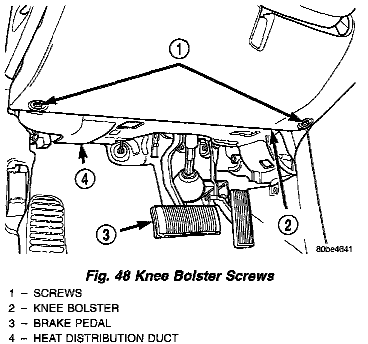 2. Remove the two screw securing the bottom of the knee bolster below the steering column in place.