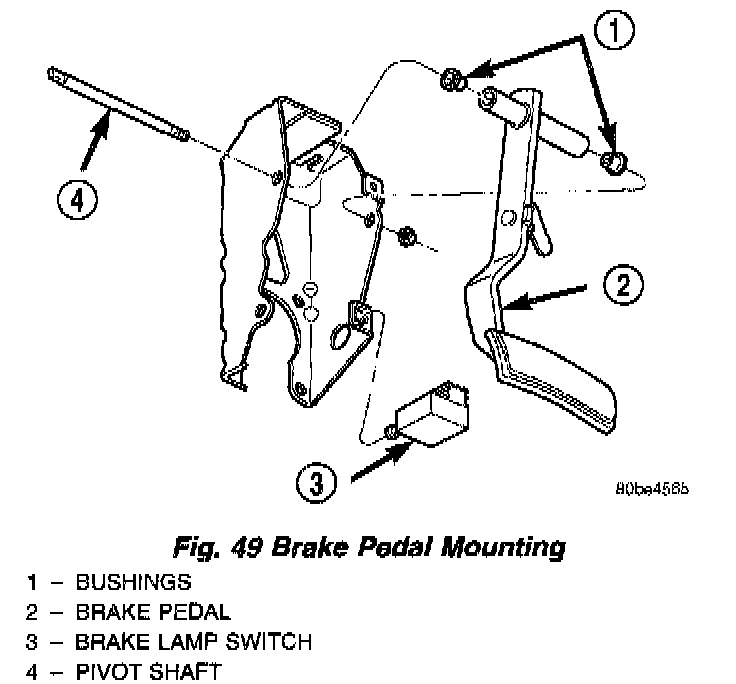2. Lubricate the brake pedal pivot shaft and brake pedal bushings using Mopar Lubriplate or an equivalent.