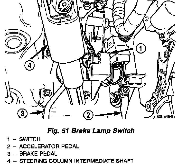 4. Remove the brake lamp switch from its bracket. The brake lamp switch is removed by depressing and holding the brake pedal while rotating brake lamp switch in a counter-clockwise direction approximately 30°.