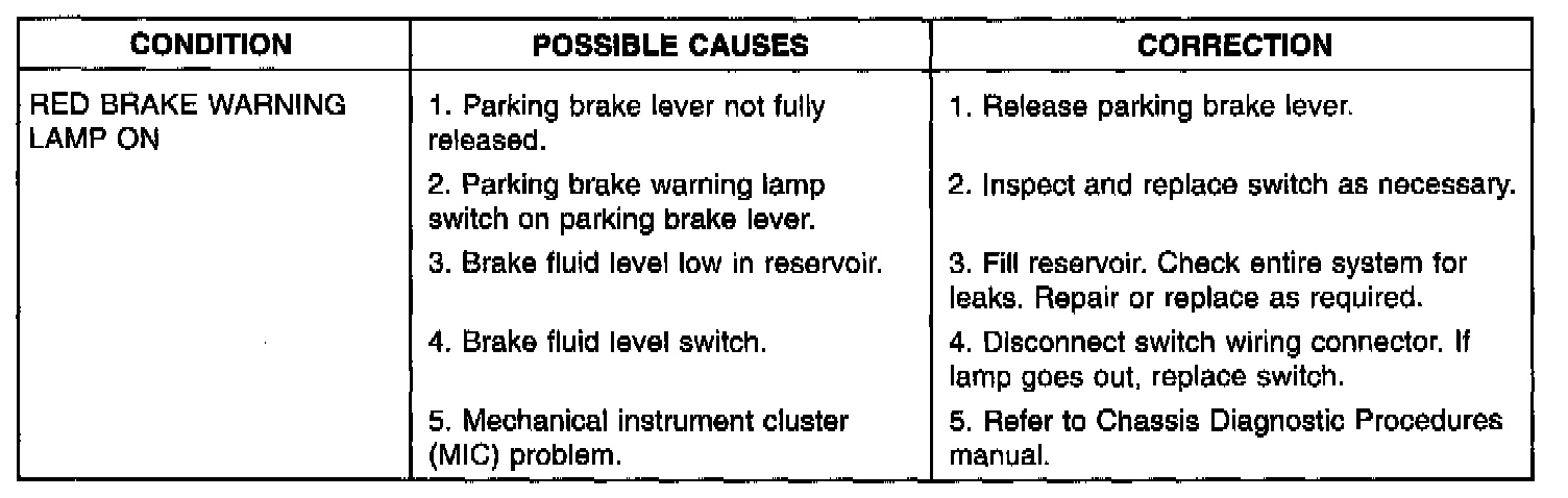 There are three diagnosis charts following that cover the RED BRAKE WARNING LAMP, BRAKE NOISE and OTHER BRAKE CONDITIONS.