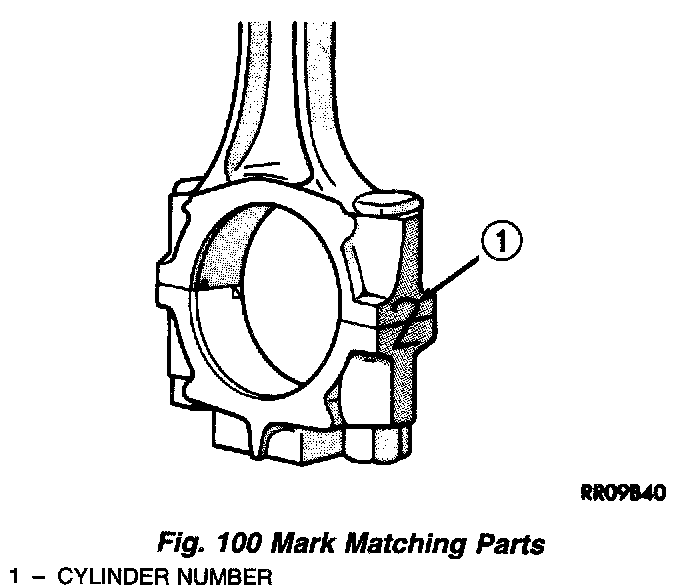 3. Mark connecting rod and cap with cylinder number (Fig. 100).