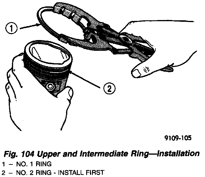 3. Using a piston ring expander, install No. 2 piston ring and then No. 1 piston ring (Fig. 104).