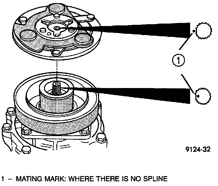 7. Install clutch plate on compressor shaft. Note the machined mating splines.