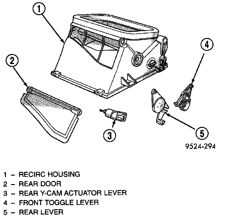 11. Front air inlet door and lever is serviced with recirculation housing.