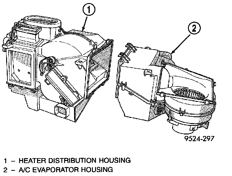 17. Remove clips retaining evaporator housing to heater/distribution housing.