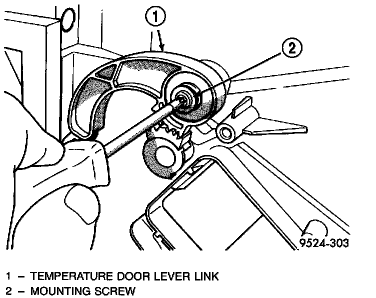 26. Remove temperature door lever link retaining screw.