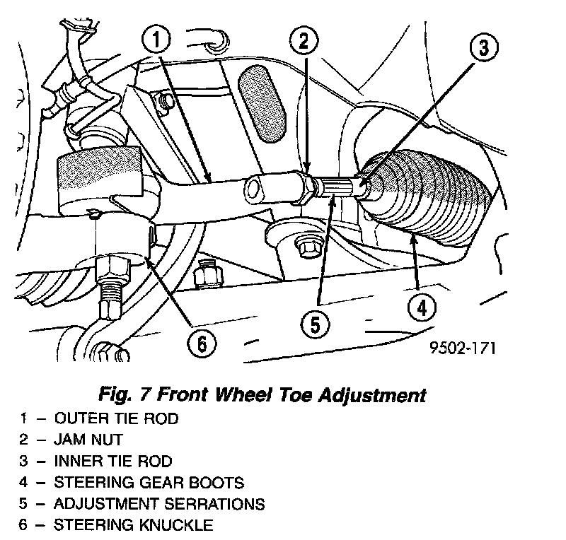 4. Adjust steering gear to tie rod boots at the inner tie rod.
