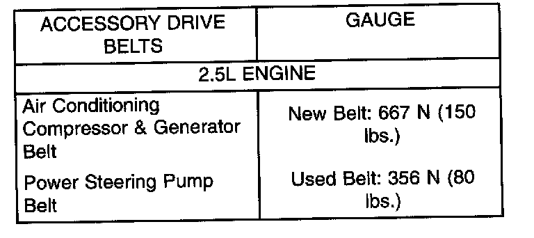 For conventional belts and Poly-V belts, use belt tensioning gauge Special Tool 7198 to obtain proper belt tension.