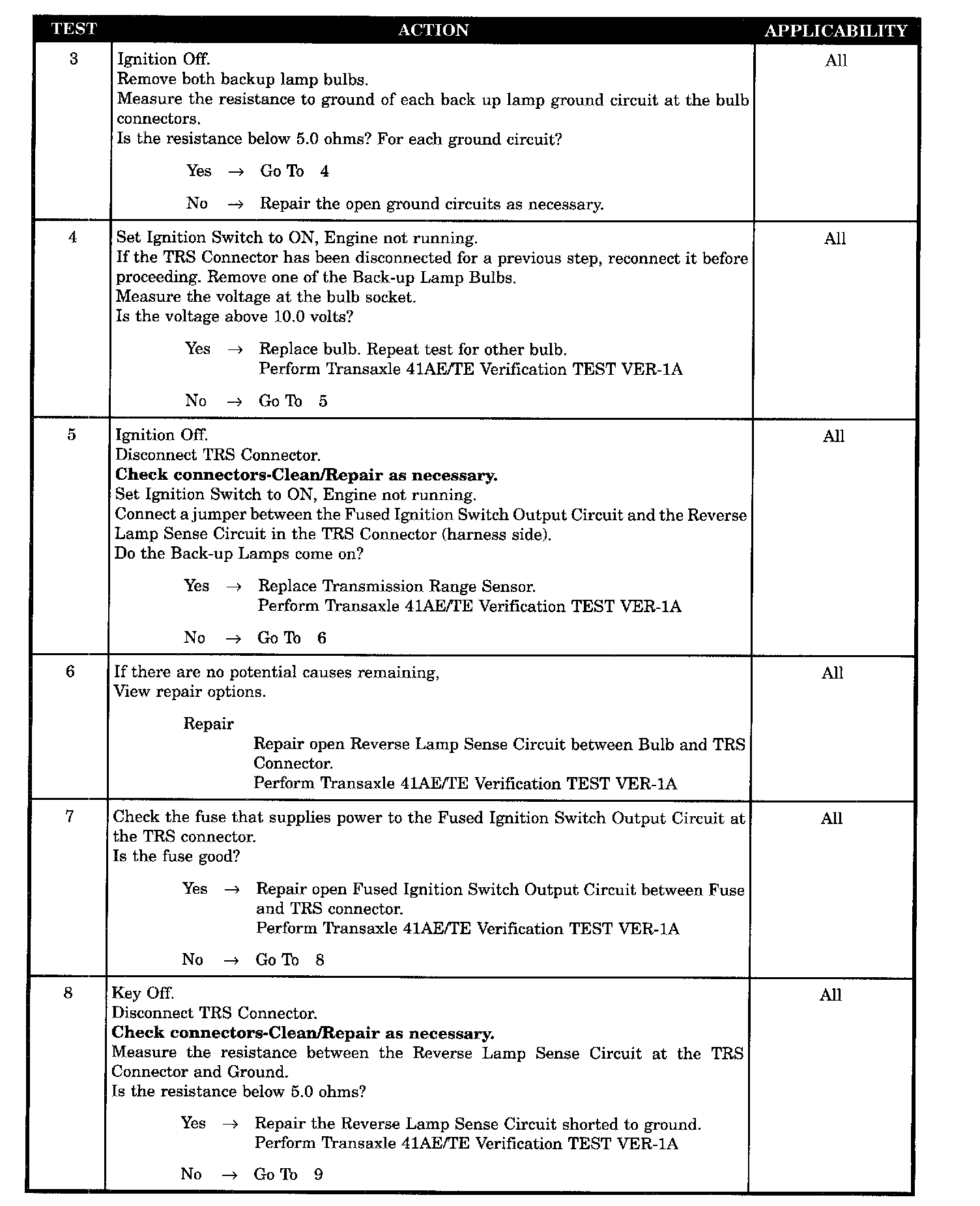 REVERSE LAMP SENSE CIRCUIT OPEN