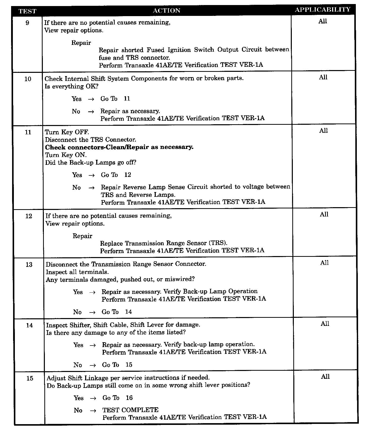 TRS REVERSE SWITCH DEFECTIVE