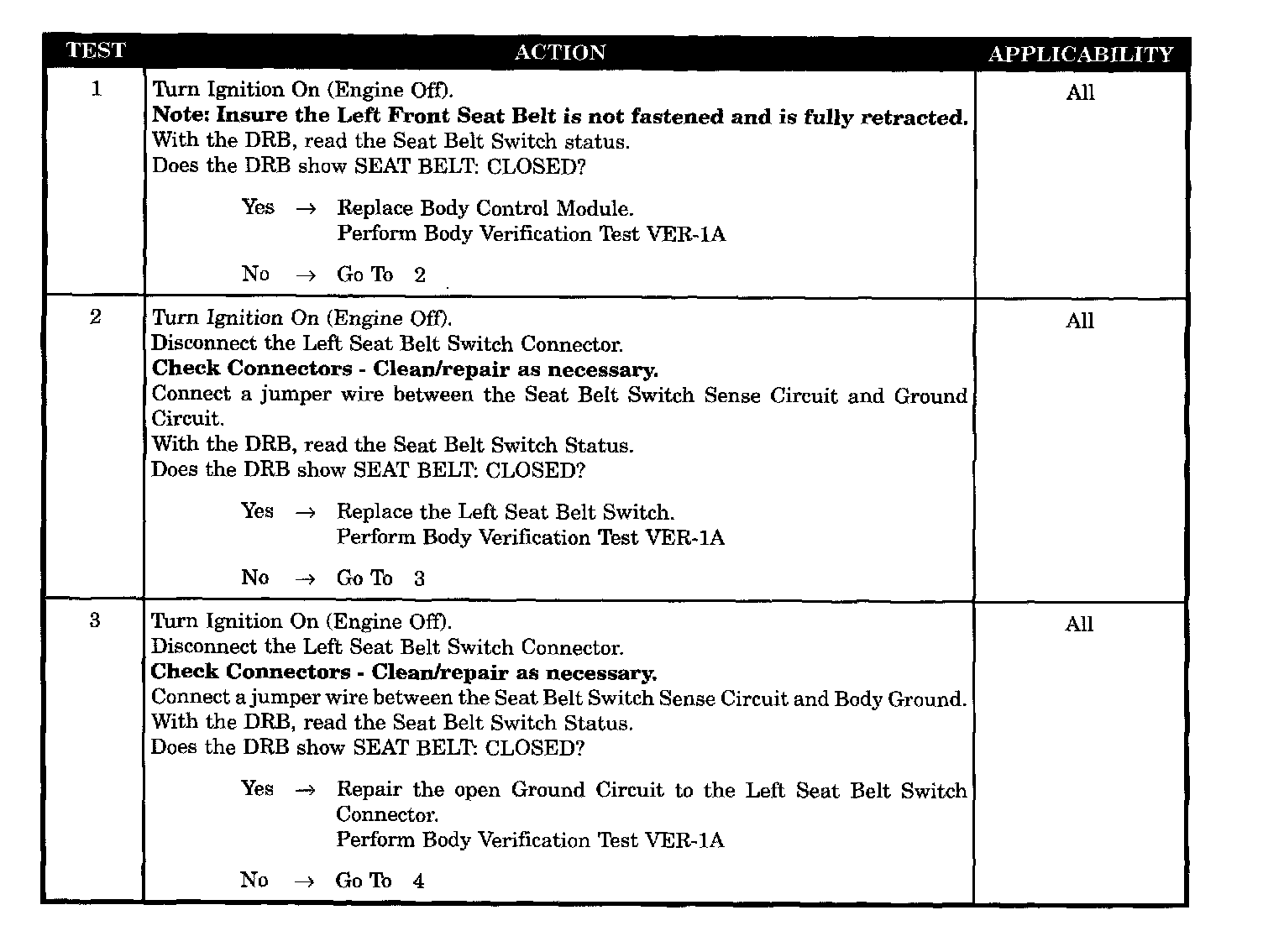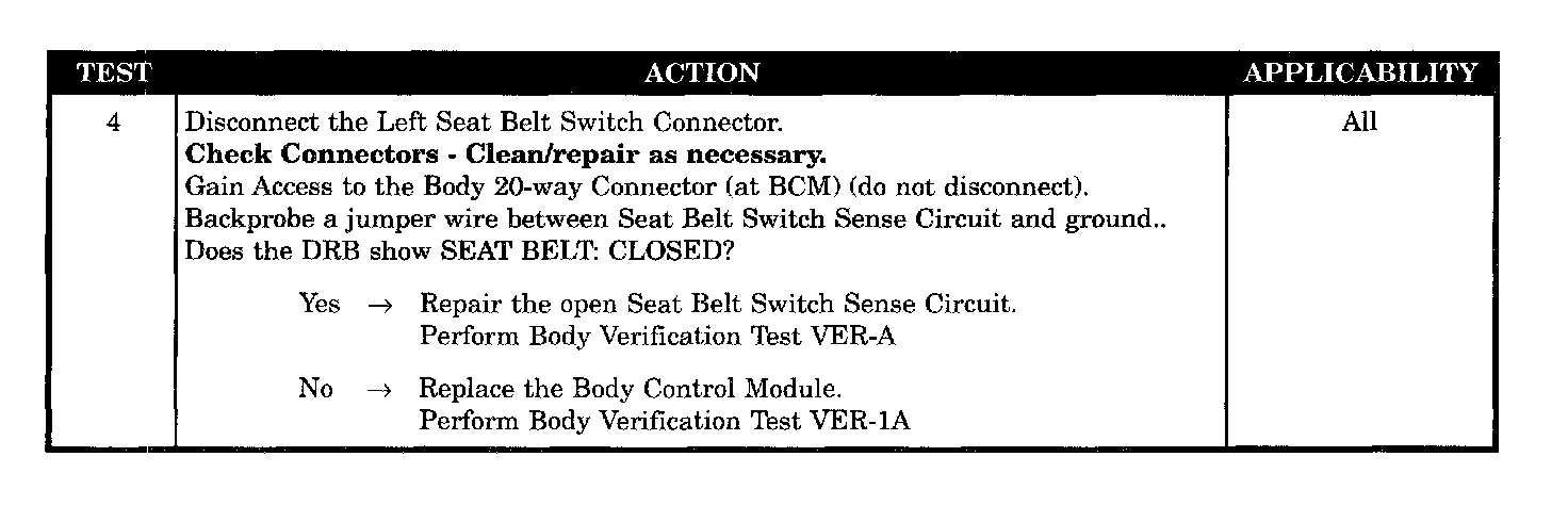 - Ground circuit to left seat belt switch connector open