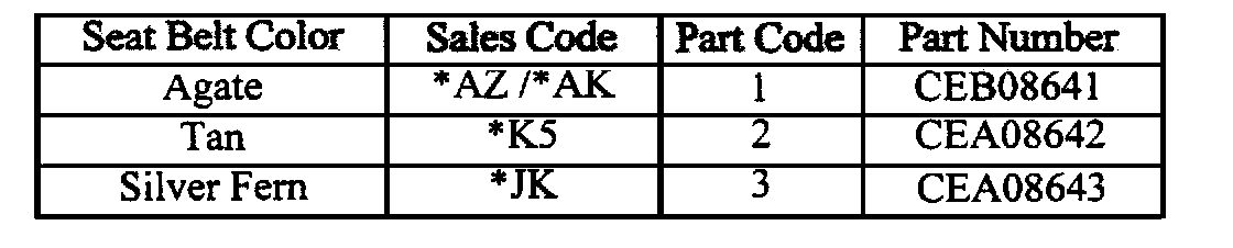 Dealers should determine which package is required for each vehicle at the time appointments are scheduled to assure that the correct part is available when the customer arrives. The appropriate Seat Belt Webbing Button package for the vehicle to be serviced may be determined by: