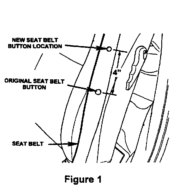1. Measure four inches (100 mm) up from the original seat belt webbing button and mark this location for the new seat belt webbing button (Figure 1).