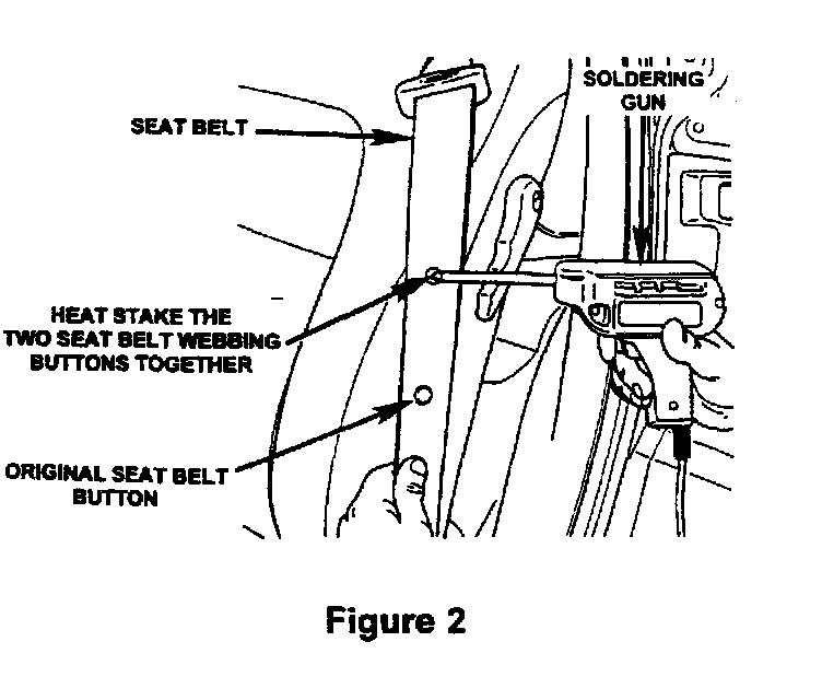 4. Heat stake the seat belt webbing button halves together using a soldering gun or equivalent (Figure 2).