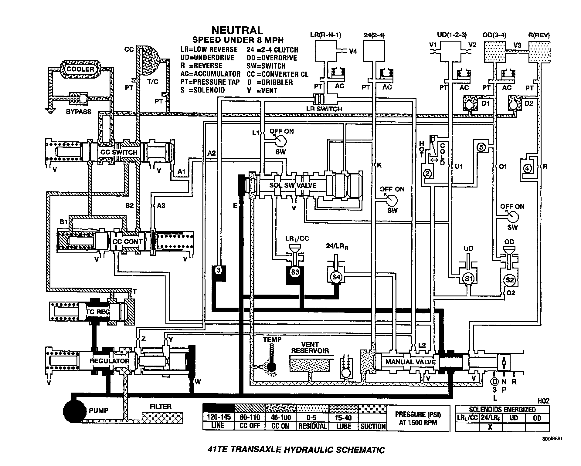 Neutral Speed Under 8 MPH 41TE Transaxle Hydraulic Schematic: