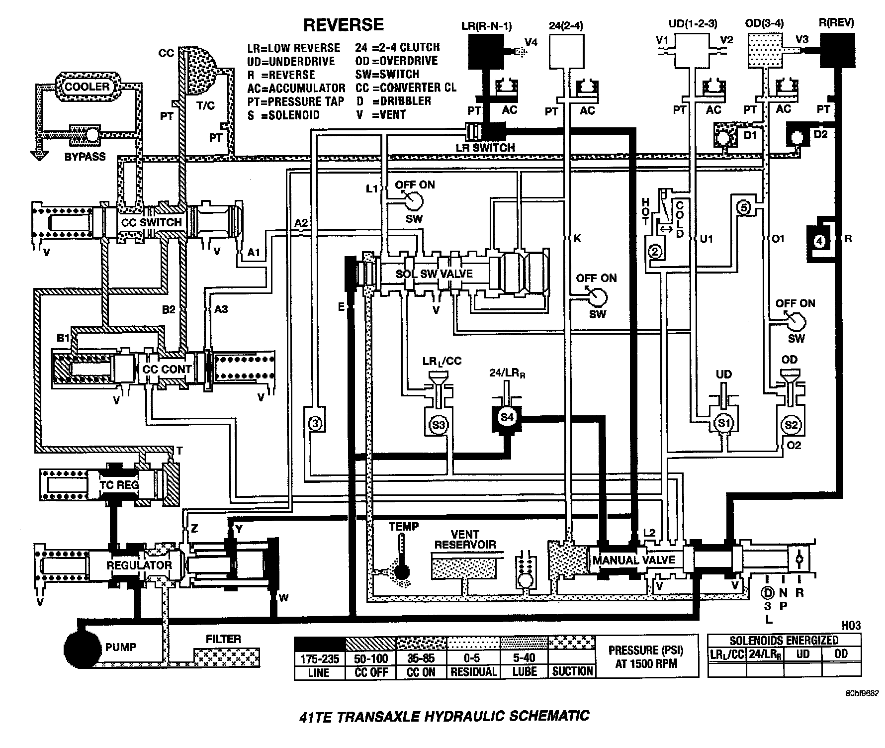 Reverse 41TE Transaxle Hydraulic Schematic:
