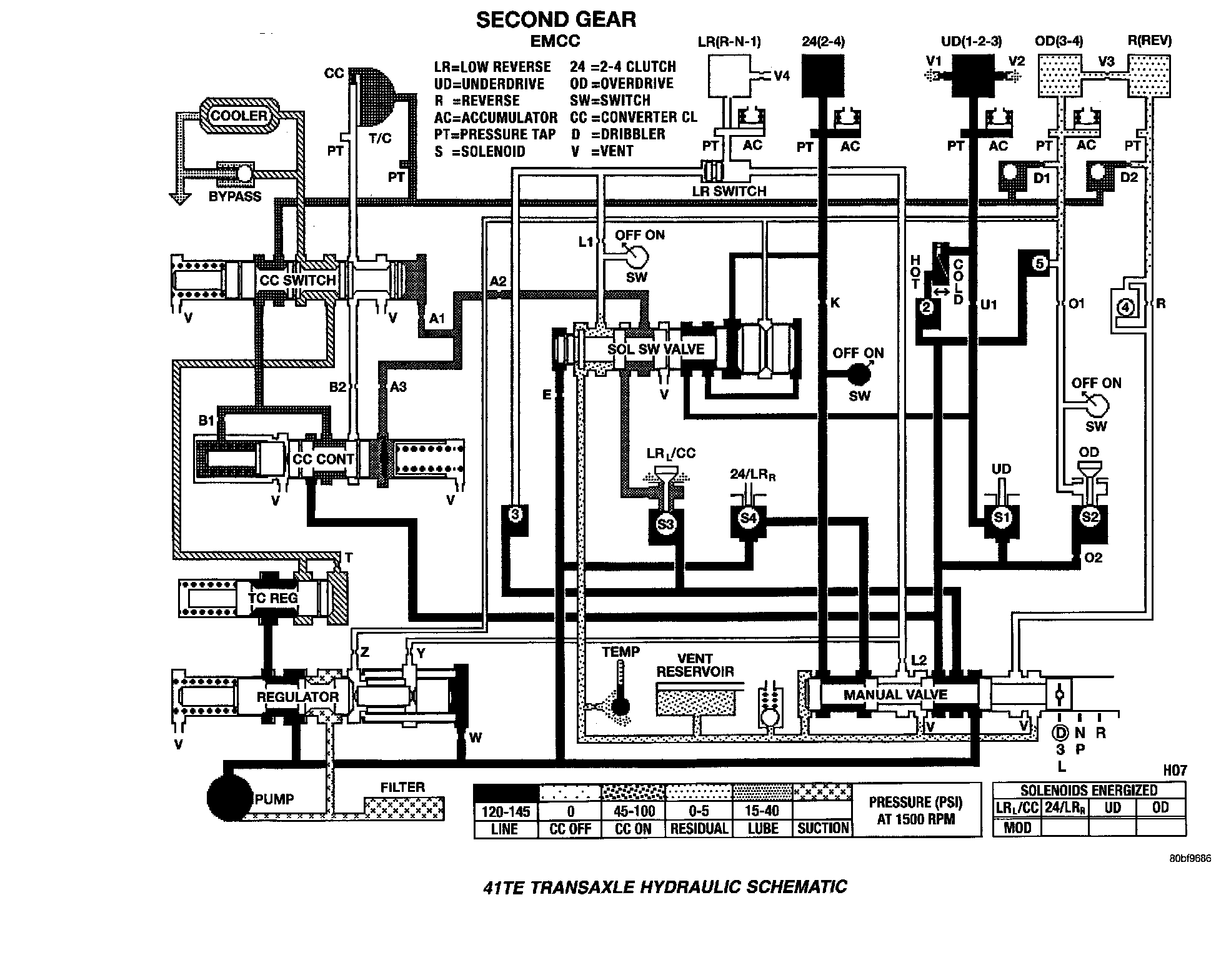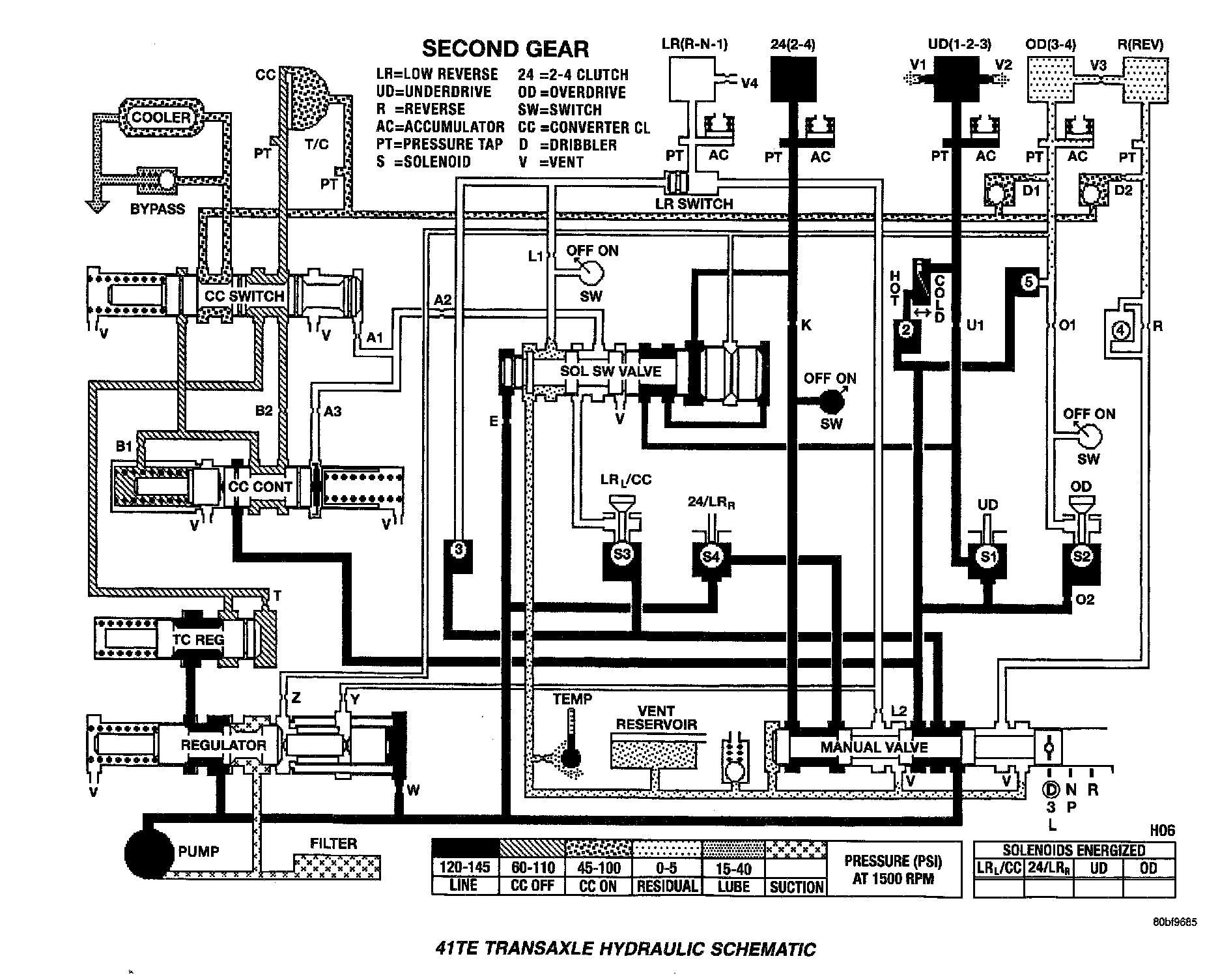 Second Gear 41TE Transaxle Hydraulic Schematic: