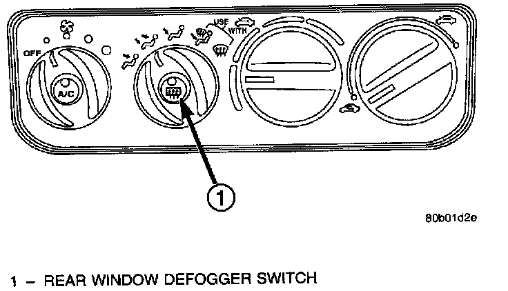 The rear window defogger is used to defog and deice the rear window in cases of freeze up and humid conditions. The switch is located within the mode select knob on the HVAC control module