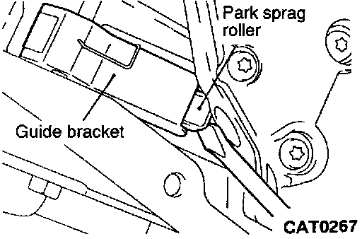 5. Using a screwdriver, push park sprag rollers away from guide bracket.