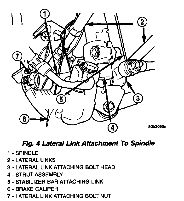 REMOVAL-LATERAL LINKSThe left forward lateral link requires a more involved removal and installation procedure in order to remove the attaching bolt at the crossmember. See separate procedures below for the proper lateral link service procedure.