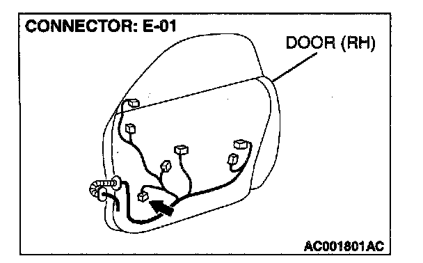 STEP 25. Check door speaker (RH) connector E-01 and amplifier connector D-19 for damage.