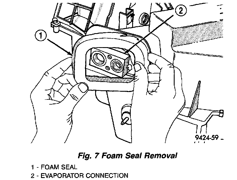 This vehicle uses an aluminum plate and fin style evaporator. It is located in the Evaporator/Blower module.