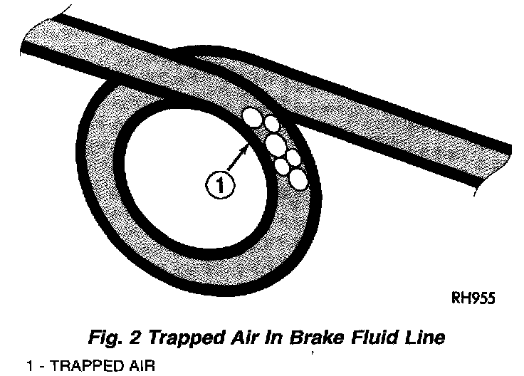 When bleeding the brake system, some air may be trapped in the brake lines or valves as far upstream as ten feet from the bleeder screw. Therefore, it is essential to have a fast flow of a large volume of brake fluid when bleeding the brakes to ensure all the air goes out.