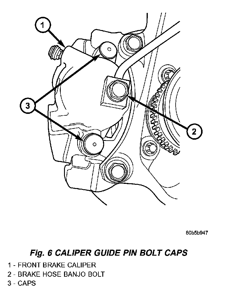 4. Remove the two caps in place over the caliper guide pin bolts.