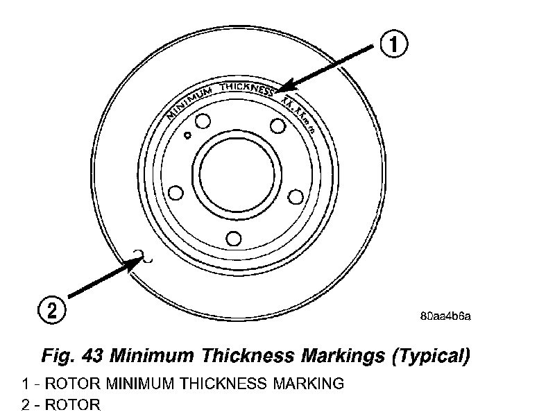 Minimum thickness specifications are cast on the rotor's unmachined surface. Limits can also be found in the table at the end of this brake rotor information.