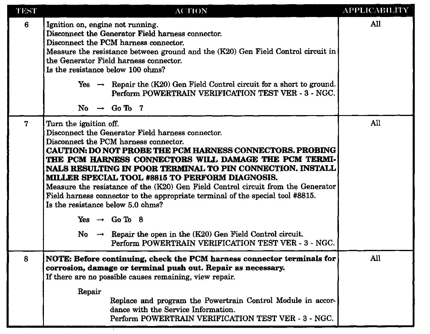 - (K20) GEN field control circuit shorted to ground