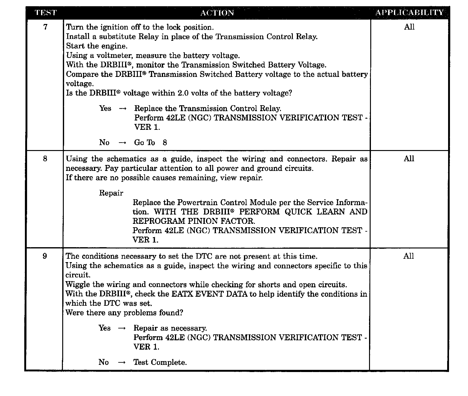 - TRANSMISSION CONTROL RELAY OUTPUT TO TCM OPEN OR HIGH RESISTANCE