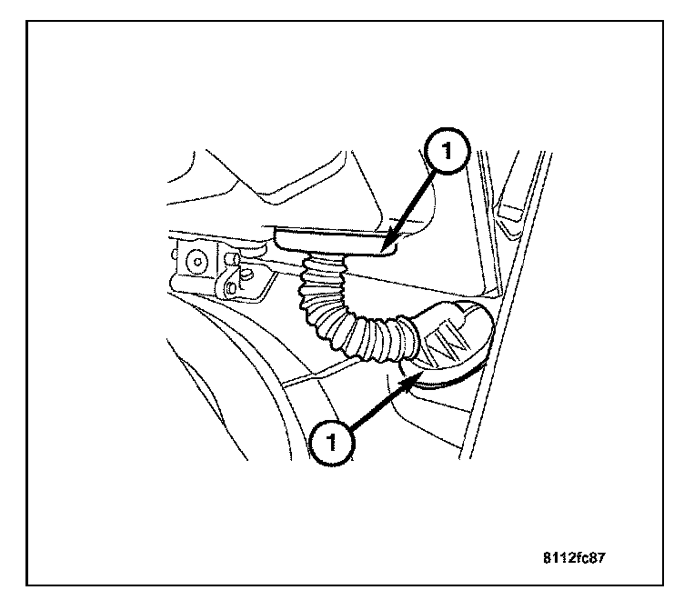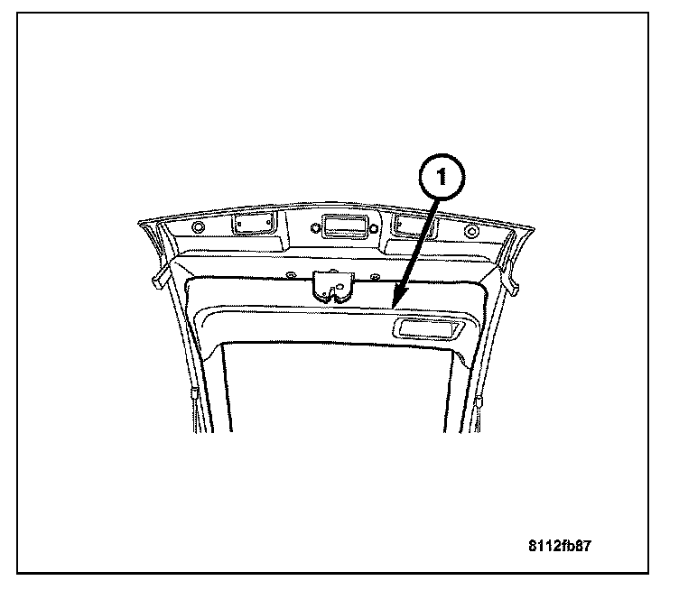 2. Remove the trim panels (1) from the liftgate. The liftgate has two trim panels, an upper and a lower. Both trim panels must be removed to access the liftgate's harness connectors. Refer to Trim Panel.